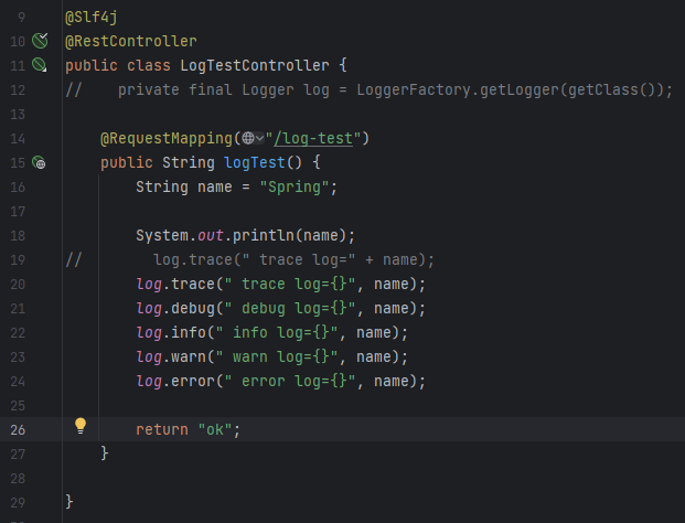로그를 다루는 라이브러리는 엄청 많은데, 그 많은 로그 라이브러리를 하나의 인터페이스로 제공하는 것이 SFL4J 라이브러리다. 심지어는 이미 lombok에서도 지원할 정도.