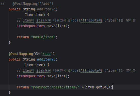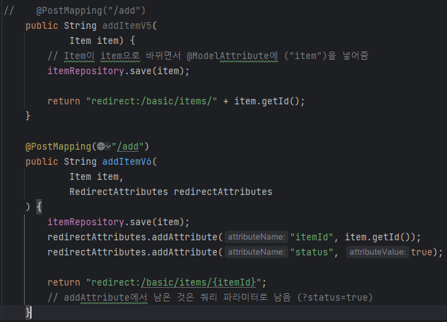 이렇게 redirect 해주면 되지만, 저렇게 + 형식으로 url을 전달하는 대신 다른 기능을 추가한 @RedirectAttributes를 사용할거다.