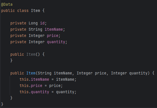 lombok의 @Data를 사용할 경우 Getter, Setter뿐만 아니라 ToString 같은것들도 의도하지 않게 같이 정의되기 때문에 그냥 Getter, Setter로 따로 쓰면서 하는게 좋다.