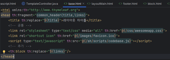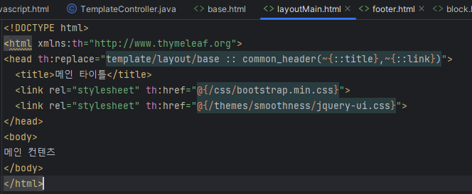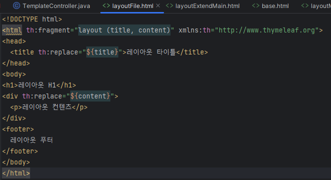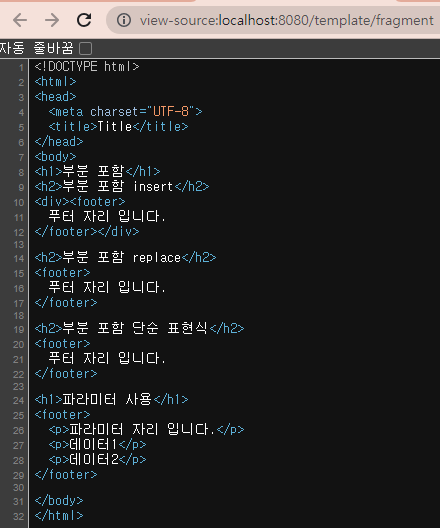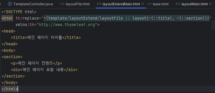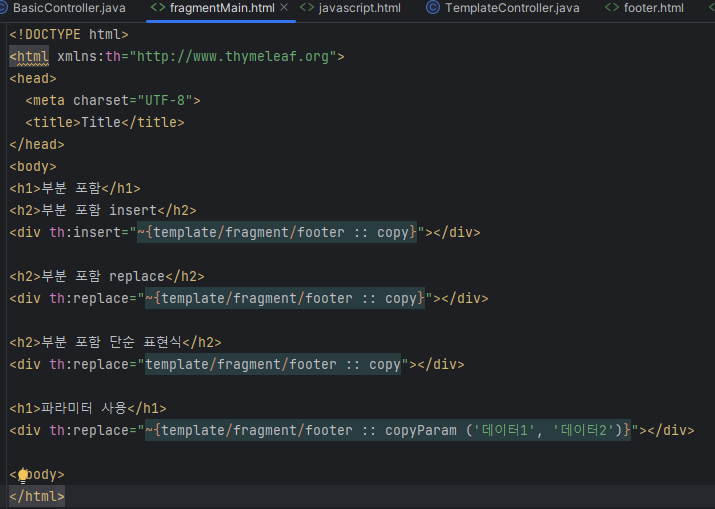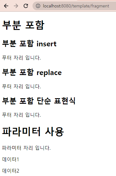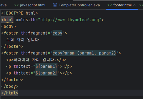 인자를 넘겨받은 함수는 th:replace로 tag 통째로 교체한다.
