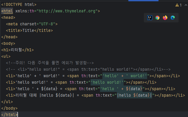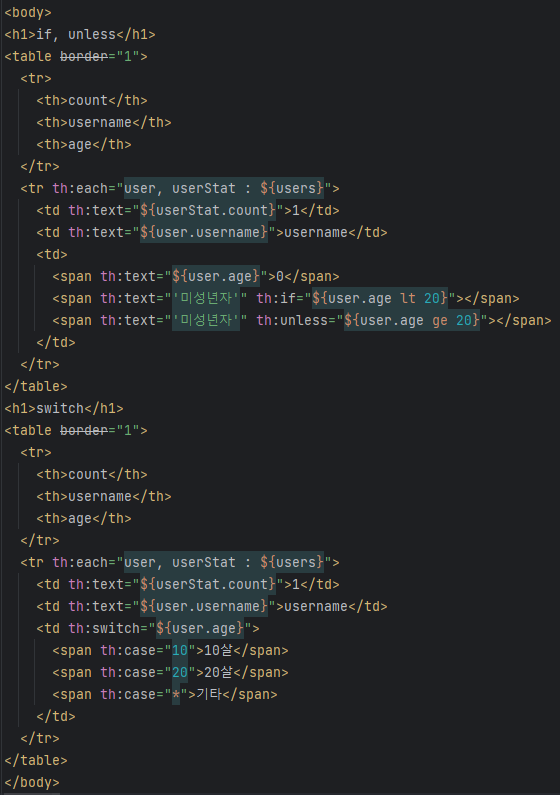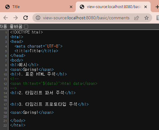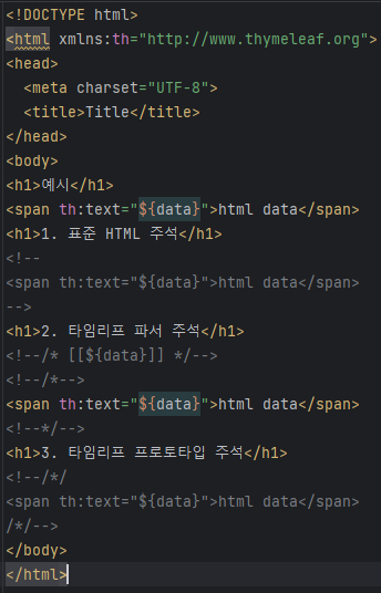 그냥 html 주석은 들어가는데 타임리프 주석은 실제 컴파일할 때 주석은 없어지는 것 마냥 없어지면서 나감. 프로토타입은 렌더링되면 나오고 없으면 안되고 한다는 것.. 잘 쓸일 없다.