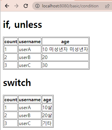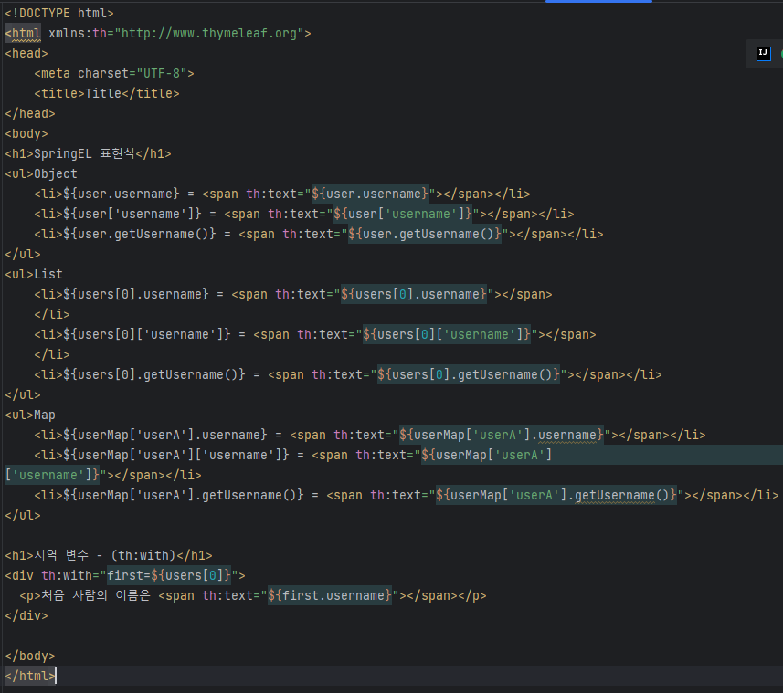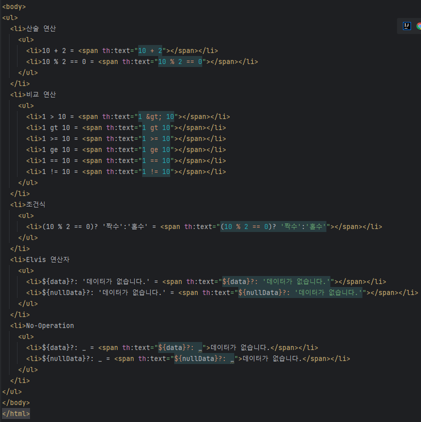 특이한건 엘비스 연산자에서 없으면 아무것도 실행하지 않아(_) html의 기본값이 실행된 것.