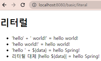 이스케이프는 model.addAttribute("data", "<br>Hello Spring!</br>")로 했다면, <와 >는 html과 <, &rt같은 걸로 반환해서 출력하자고 해서 html에 <이면 <으로 인식하자는 사전 약속으로 <가 적혀있고 <가 표시된다. 이걸 언이스케이프 하려면 utext나 [[(...)]]를 하면 된다.