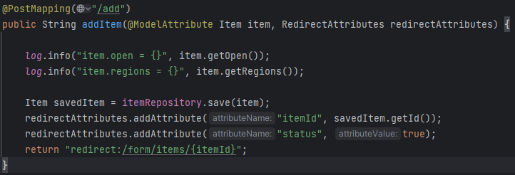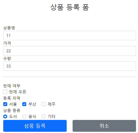 또 스프링에서 해주는 골치아픈 체크박스같은 문제들을 해결해준다. 값이 체크되어 있을 경우 html이 on을 반환해주지만 아닐 경우 그냥 그 값 자체를 생략해서 보낸다는 것. 추가할때 문제가 안될 수도 있지만 수정할 때 문제될 수도 있고, 무엇보다 null보다는 false로 하는게 편하다.