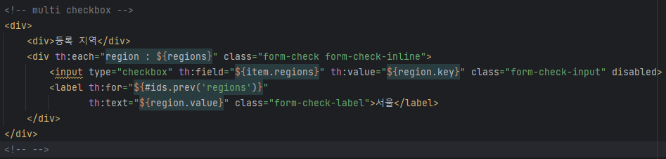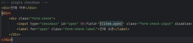 disabled같은것도 타임리프를 위해 만든 field 속성을 이용하면 알아서 해준다. 원래 값이 true면 check=check를 넣어줘라 같은 걸 해줘야 한다.