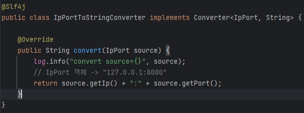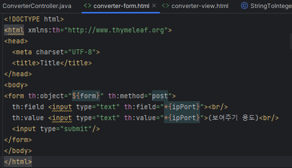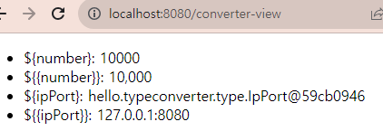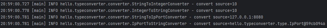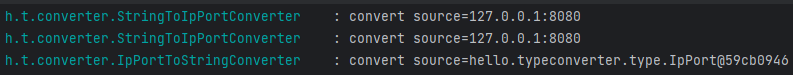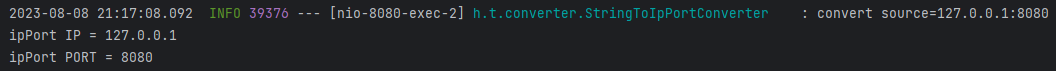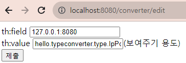 보면 기존에 쌓여있던게 아니고 제출 누르는 순간 컨버터가 실행되었다. 뷰에서 컨트롤러로 올 때 String으로 오기때문에 @ModelAttribute 내에서 ipPort로 변환해서 오고, 다시 뷰로 오기 때문에 뷰인 타임리프에서 ipport를 string으로 변환시킨다.