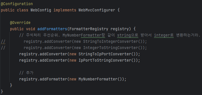그냥 등록만 하고 쓰면 된다. Formatting인데도 그냥 converter를 넣어도 되는 이유는 formatter가 converter를 상속하고 있기 때문임.
