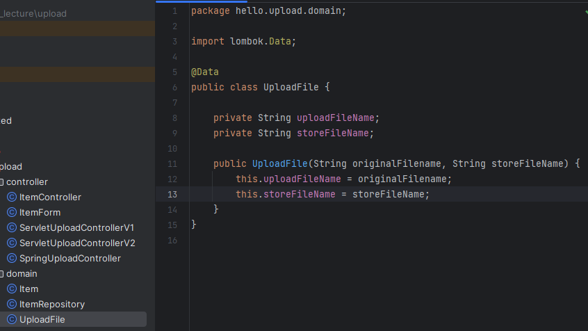 uploadedFileName과 storeFileName을 따로 만드는 이유는 실제 서버에 저장할 때의 이름은 uuid같은 고유 이름으로 해야 이름 충돌이 안나기 때문이다.