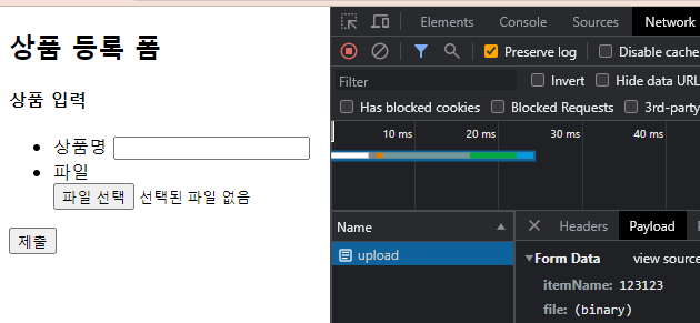 그런데 바이너리인 파일은 어떻게 보낼 것인가? 만약 이름, 나이, 이미지파일 같은 형식으로 string과 binary파일을 같이 보내야 한다면?? 이런것 때문에 enctype="multipart/form-data" 방식이 나왔다.