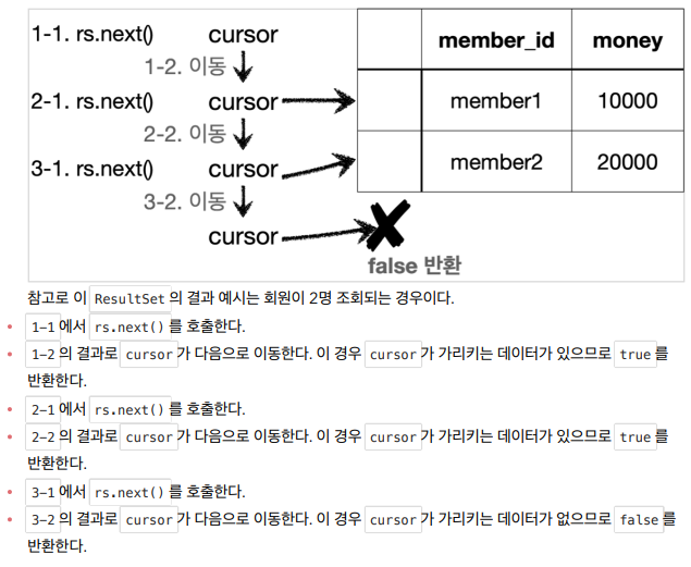 실제 DB를 순회하면서 조회하는건 ResultSet이다. 포인터같은 거라고 보면 됨.