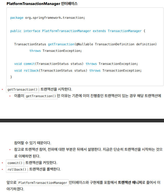 그래서 저 .executeWithoutResult안의 함수가 제대로 실행되면 commit하고 언체크 예외가 발생하면 rollback한다(체크 예외의 경우는 커밋하는데, 이 부분은 뒤에서 설명한다고 함).