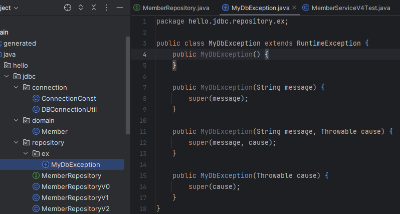 원래는 체크 예외인 SQLException을 런타임 예외로 바꾸기 위한 런타임 예외 db 클래스를 따로 만들자.