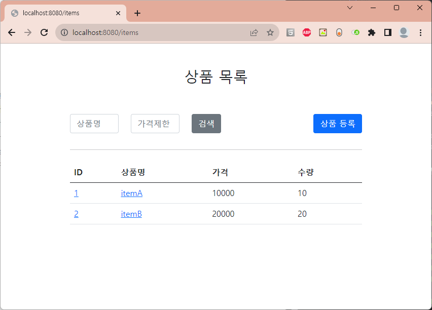 예전에 강의 실습으로 만들었던 상품 등록 사이트에 기능이 조금 추가된 형태다. 이걸 베이스로 하고 레퍼지토리를 바꿔가며 실습할건데, 코드 구조를 간략하게만 보자.