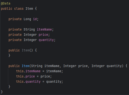 Item item1 = new Item("itemA-1", 10000, 10);