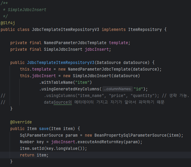 부록으로 SimpleJdbcInsert라는게 있는데, insert를 더 편리하게 해주는거다. insert에서만 지원함.