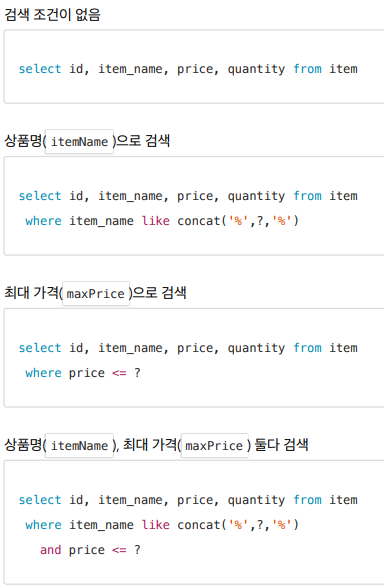 finaAll은 동적쿼리라서 조금 복잡한데 동적쿼리가 뭐냐면 클라이언트가 준 상황에 따라 where를 할지, like를 쓸지 말지 등 sql문이 상황에 따라 변하는거임. 여기선 검색, 필터 기능이 있었기 때문에 생긴거다.