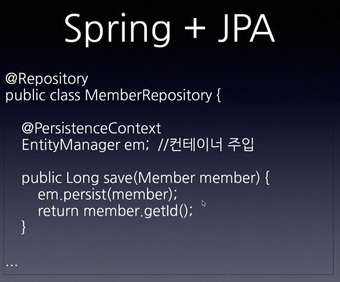 스프링 데이터는 DB하고만 소통하는 진짜 기능들, 뭐 find, select, save, update같은거.. 들을 모든 DB를 통트는 하나의 기초 같은거고 거기에 함수 기능들을 확장시키고 확장시키고.. 해서 정말 함수 이름만으로도 할 수 있을 만큼 매우 확장한 스프링 데이터 JPA라는게 있는거다.