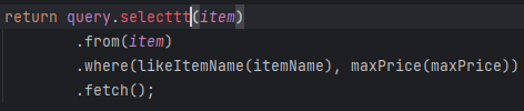 .where(likeItemName(itemName), maxPrice(maxPrice))