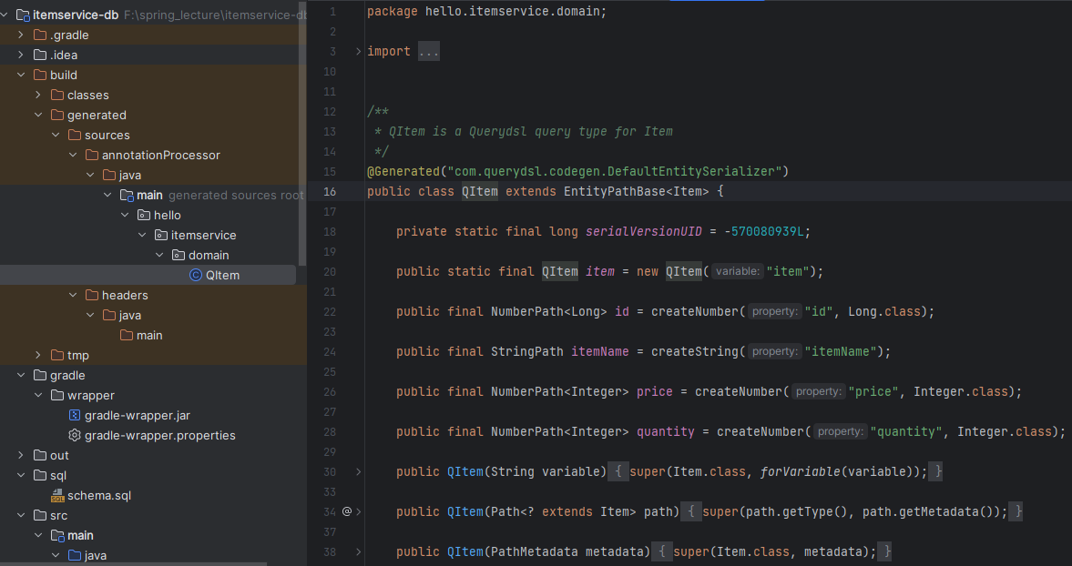 난 gradle로 실행하도록 해놔서 build 밑에 QClass가 생성됨.