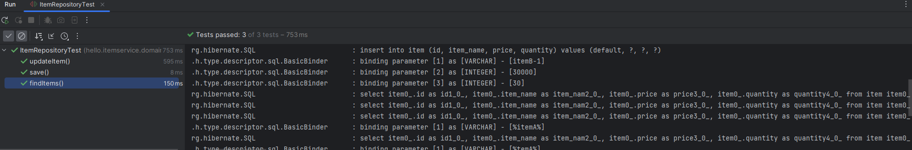 테스트로 실행해보면 hibernate sql 문이 나오는데, 결국은 jpa가 했던 것처럼 sql문을 작성하는걸 알 수 있다.