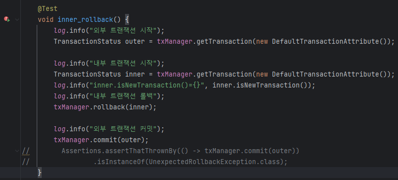 얘도 새로 만드는거라 isNewTransaction()이 true이고, 이게 true이기 때문에 커밋이 실제로 동작하는 것이다.