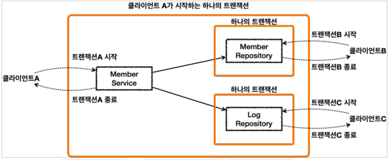 근데 서비스에만 트랜잭션을 넣어놨으니 만약 서비스가 아닌 다른곳을 통해 레퍼지토리 함수를 실행하려고 하면 트랜잭션이 적용 안되는 문제가 발생한다. 또 새로 추가되면??