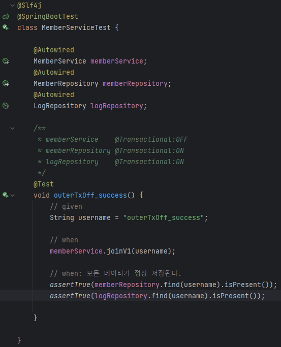 함수에 @Transactional을 붙인게 아니라 이미 각각의 함수들 안에 @Transactional이 붙어있다.