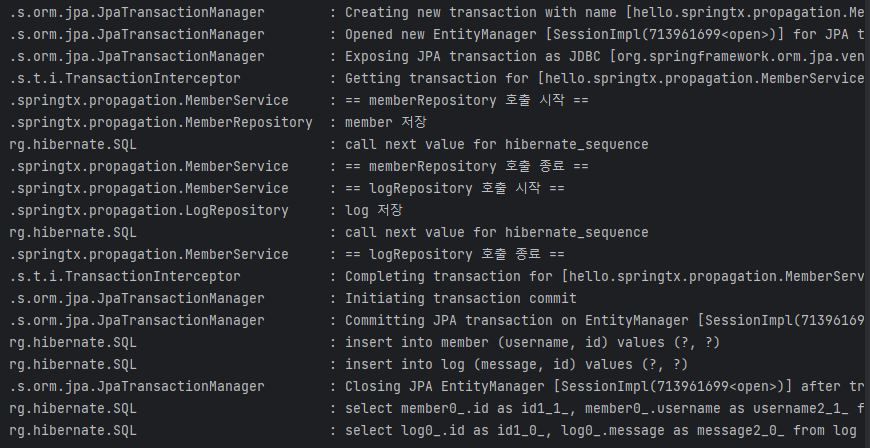 로그 부분만 REQUIRES_NEW로 바꿔서 따로 커넥션을 만들어서 실행해주자. 그럼 여기서 에러가 떠도 멤버 등록까지 관리하는 서비스의 트랜잭션은 영향 없이 정상적으로 될거다.