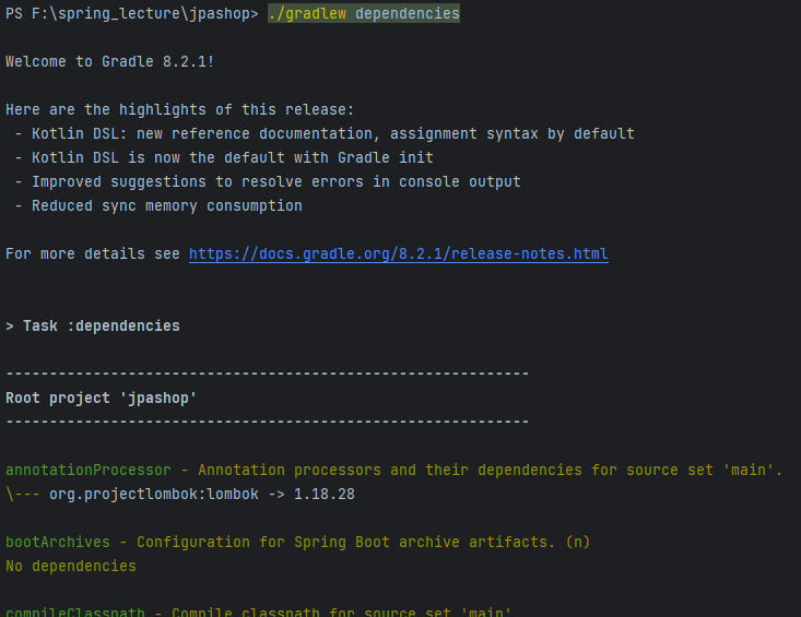 주목할만한건 HikariCP, slf4j, mvc고 start-web에 이미 tomcat이 들어있기 때문에 겸사겸사 다 같이 설치된 것.