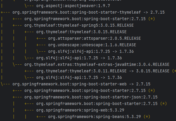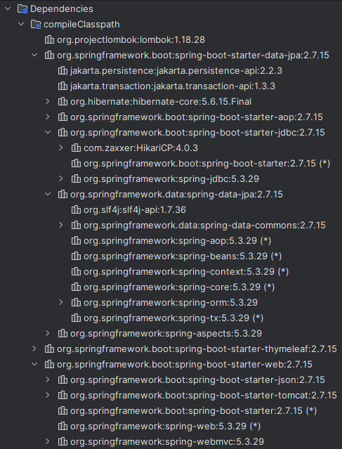 start.spring.io를 통해 라이브러리를 3개정도 받았는데 보면 뭔가 많다. 이건 그 라이브러리를 실행하기 위한 다른 종속성 라이브러리들까지 합해서 들어오기 때문.