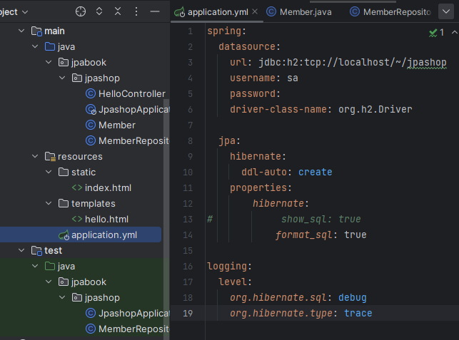 type trace는 어떤 sql을 하는지 표시해주는거. 이따 종속성에 p6spy라고 적용해주는데 이거 하면 더 잘보인다.