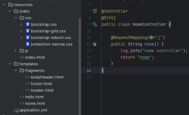 뷰를 위한 html들 넣어준다.. 볼만한건 fragments/header .. 로 이하로 한다는 거