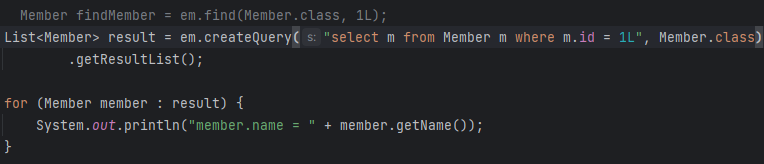 더 뭔가 구체적으로 조회하고 싶을 땐 JPQL을 사용하면 된다. sql문을 작성하는 듯 하지만 sql의 테이블 대신 자바 객체를 입력으로 받는다. 물론 실제 sql문으로 변환을 알아서 해주기 때문에 가능한 것.