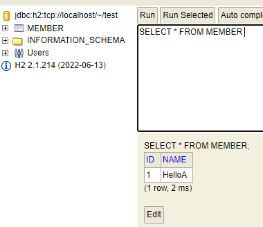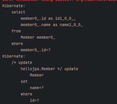 sql없이 엔티티로 정의된 클래스 가지고 트랜잭션 안에서 수행하면 commit할 때 알아서 감지해서 sql문 짜준다. 실제로 db에 들어가 있다.