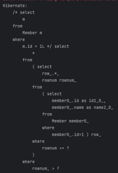 이러면 그냥 sql문을 쓰는거랑 뭐가 다르냐 하겠지만 여러 db의 방언들도 자기가 알아서 처리해주는 hibernate를 사용하고 있다는 걸 잊지말자. 예시로 페이지네이션 같은 경우 db마다 문법이 다른데 이걸 조정해준다.