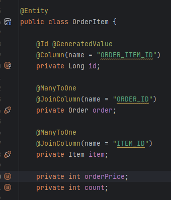 일단 단방향으로 설계하기 위해 Order, OrderItem부터 수정하자.