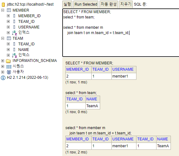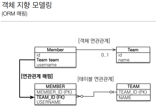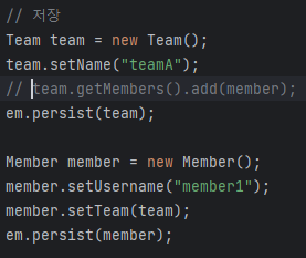 이렇게 team에서도 list를 통해 member정보를 정의할 수 있지만 db는 아무것도 달라진게 없다. 여기서 괴리가 발생한다.