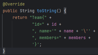 시나리오로 팀 안에 멤버 여러개가 있는 경우. 모델링 하고 실제 코드를 짜보면 아래와 같이 된다.