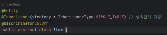 Inheritance로 JOINED를 넣으면 join방식으로 바뀐다.