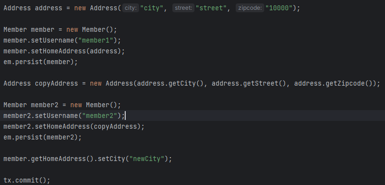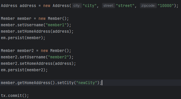 근본적인 해결책은 Integer도 클래스지만 값 변경 set이 불가능했던 것 처럼 나도 @Embeddable 클래스를 만들 때 변경 불가능하게 만들어 놓을 것. 방법은 set 함수 자체를 안만들든 private로 하든.. 그러면 누가 변경하려면 일일히 복사해서 다시 만들어서 할 것이기 때문에 문제 자체를 방지할 수 있다. 사실 가장 문제였던건 실수로 그냥 set으로 막 바꿔도 이 버그 자체를 에러로써 아예 못 잡는 것이었는데 이런걸 미연에 방지할 수 있다.