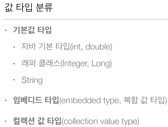 기본값이랑 임베디드 값 알아볼건데, jpa하며 엔티티가 나오고 엔티티를 엔티티 타입이라고 설정해놓아서 순수 자바 객체 값들을 일반값이라고 정의한거다.