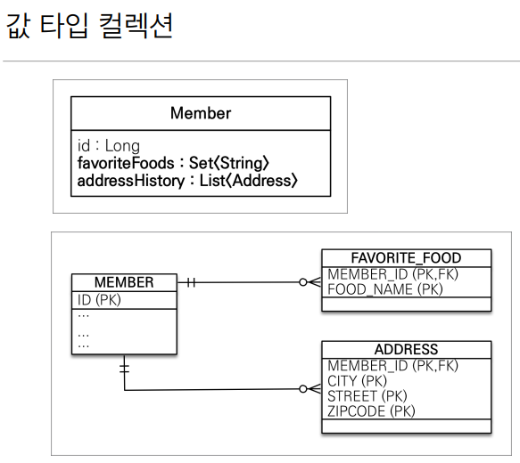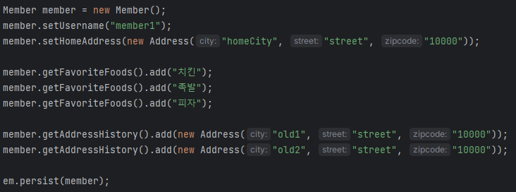 값 타입 컬렉션, 즉 위에서 본 기본 타입이든 만든 타입이든 이걸 List나 Set 같은 컬렉션에 넣었을 때를 보자.