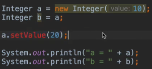 근데 이제 Integer는 클래스라 주소값 &형식으로 저장할텐데 다른 변수도 이 주소값을 공유하도록 정의하면 이 클래스 안에있는 값이 바뀔경우 의도하지 않았는데 바뀌는 사이드 이펙트가 될거다. 하지만 이런 경우는 자바가 Integer같은 클래스를 만들 때 ㅅset으로 설정 자체가 불가능하게 막아놓았기 때문에 괜찮다.