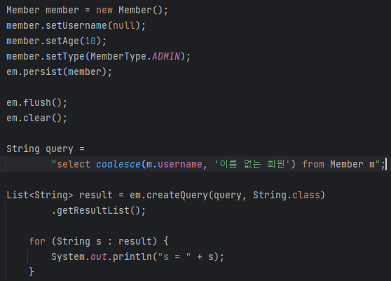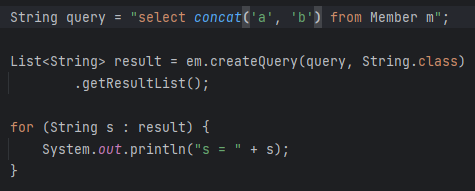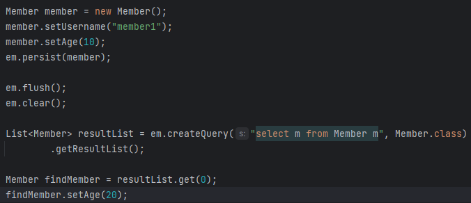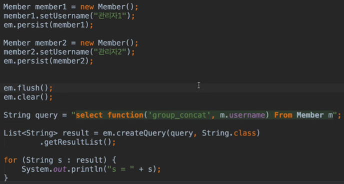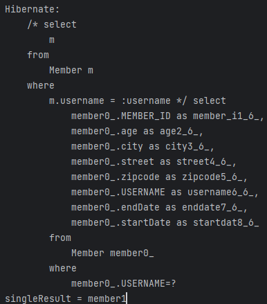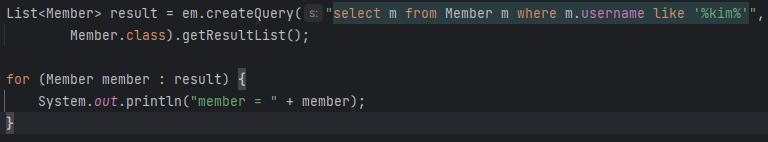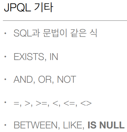 jpql은 쌩 sql과 매우 유사하며 대상이 테이블 객체가 아니라 jpa 객체라는데에 있다.