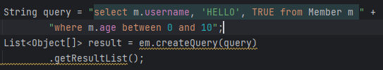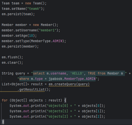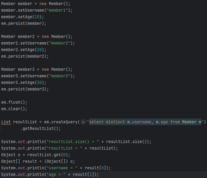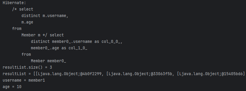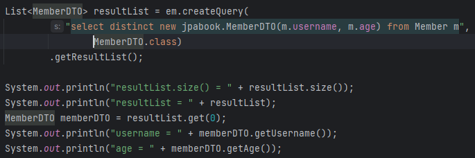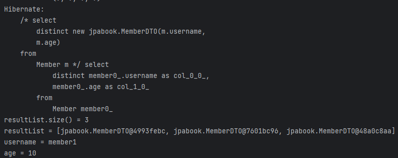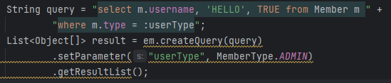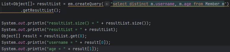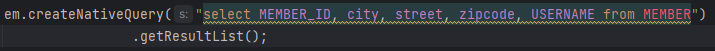 다음은 추천하는 방법인 이 select를 위한 dto 클래스를 만들고 new를 써서 추적가능한 entity로 만든 뒤 깔끔하게 가져오기.