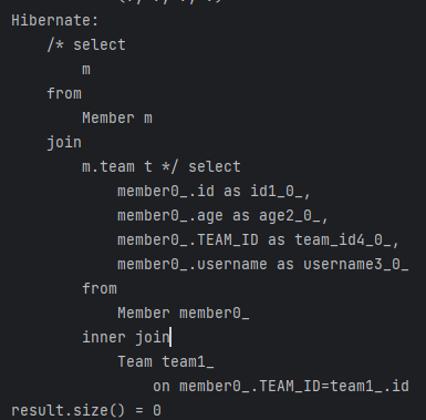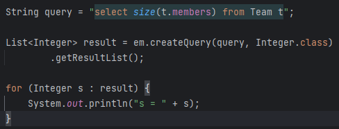 jpa만을 위한 특이한 함수인 size. 해당 컬렉션 엔티티에 얼마나 들어있나 보여줌.