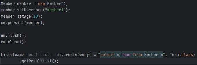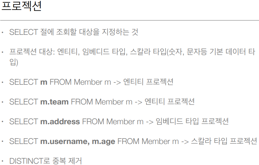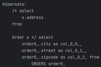 임베디드는 어딘가에 소속되어 있기 때문에 직접 from Address 식으로 적을 순 없고 소유하고 있는 객체를 한번 거쳐야 한다.