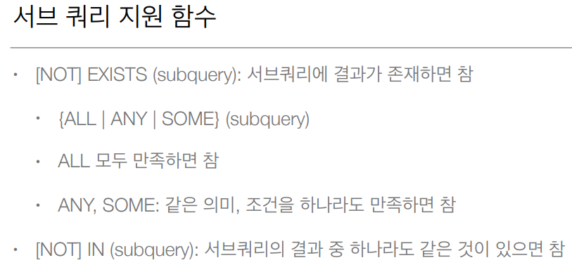 함수를 사용할 일이 정말 많지만 다행히도 이미 각 db에 따라 정의되어 있는 함수들이 많다.