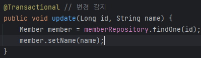 영속성 컨텍스트로 ujpdate가 알아서 나간다.