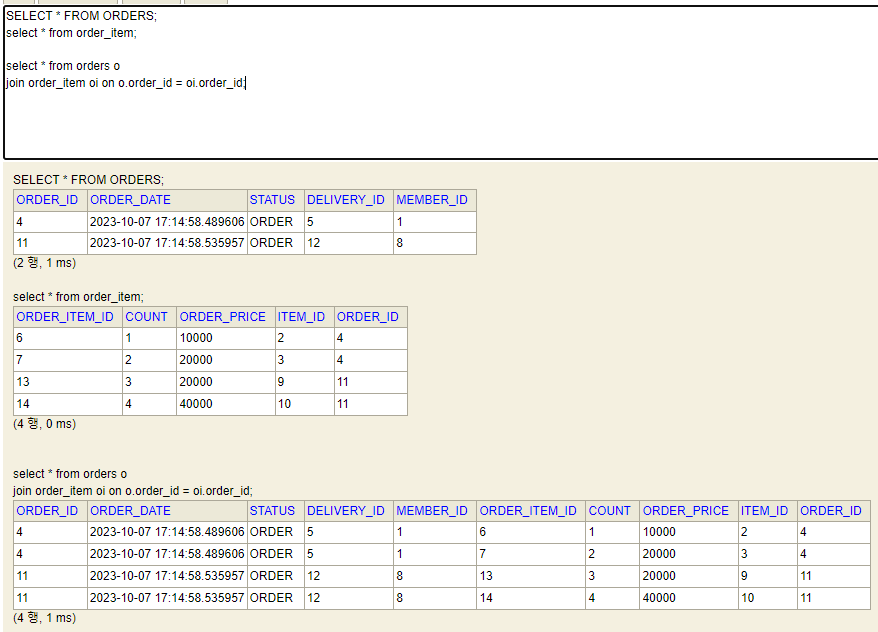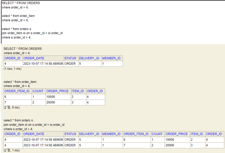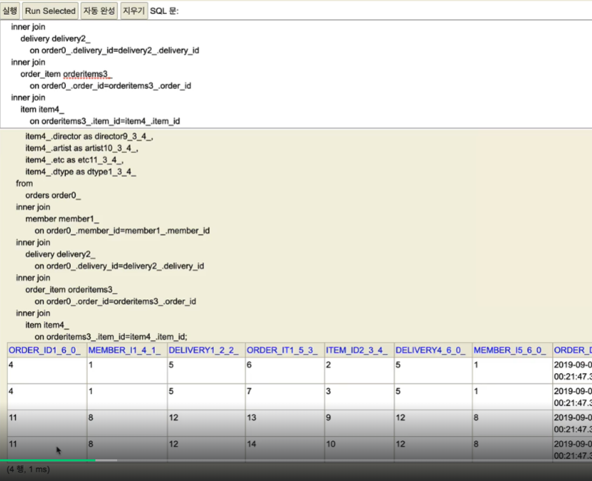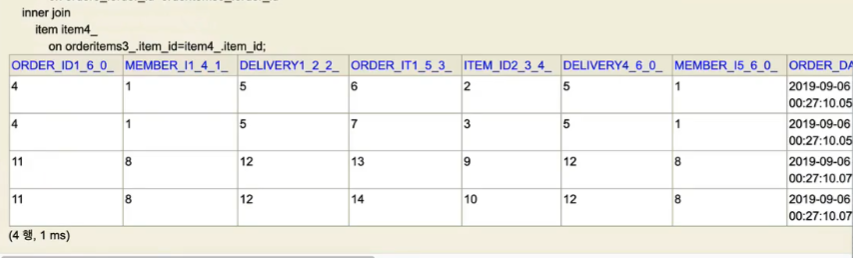 join을 했을 때 중간에서 자기 자신을 여러개 가지고 있으므로 자신은 하나인데 최종 결과는 증식한다. 실제 sql 출력된걸 그대로 입력해도 그렇다.